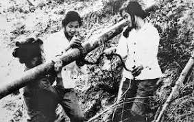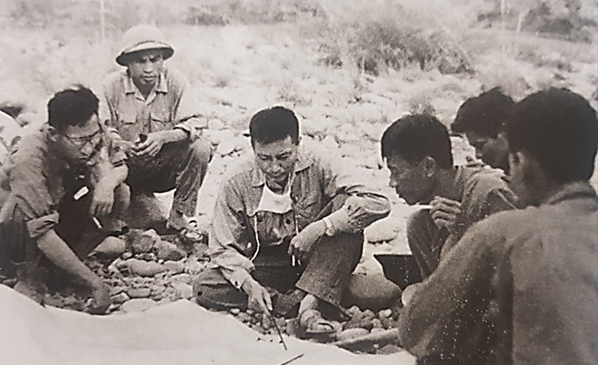 Tư lệnh Đồng Sỹ Nguyên duyệt phương án thi công đường ống xăng dầu qua Tây Nguyên tại thực địa, cuối năm 1969. Ảnh tư liệu