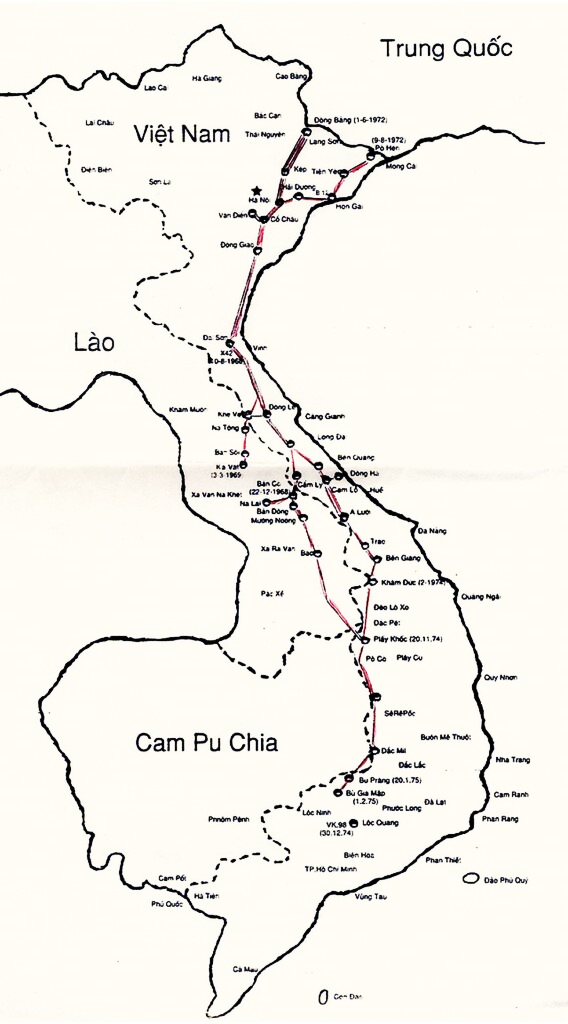 Sơ đồ toàn tuyến đường ống xăng dầu từ miền Bắc vượt Trường Sơn vào Bình Phước