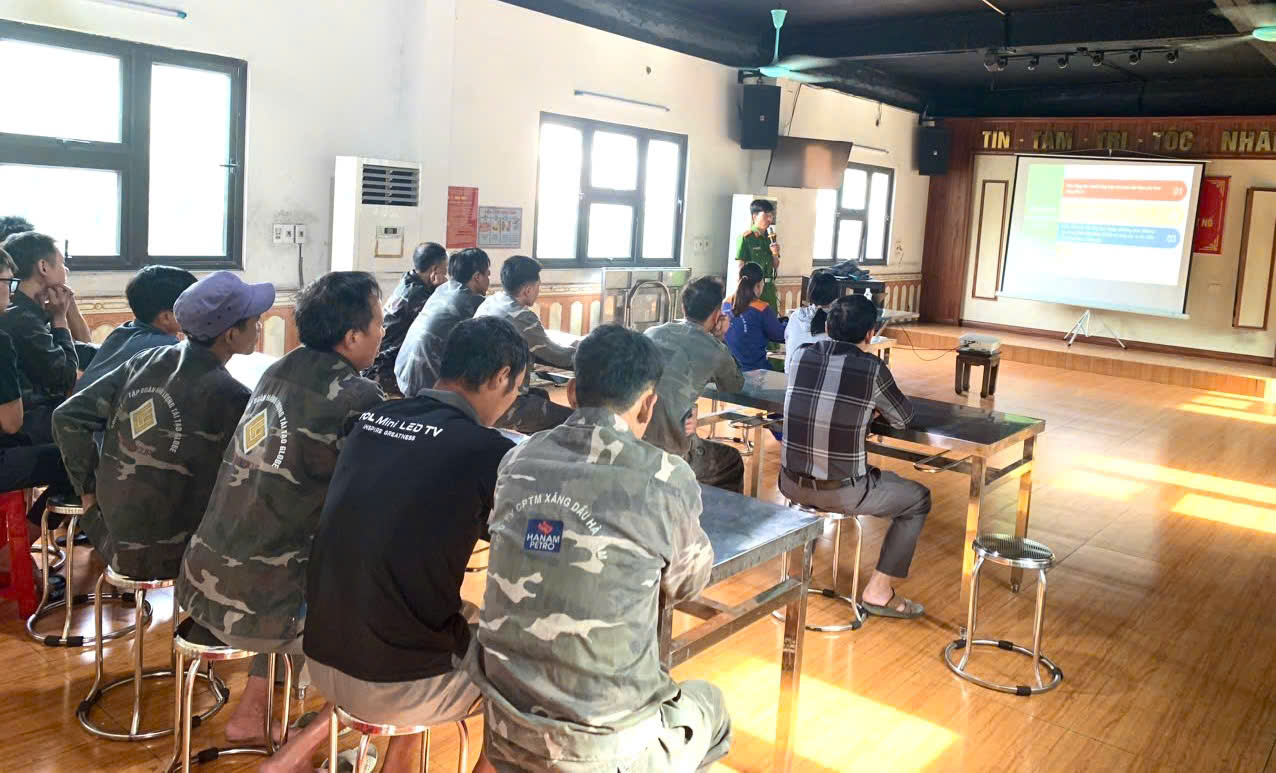 Hình ảnh cán bộ nhân viên Globe nghe nghe phổ biến kiến thức về PCCC&CHCN