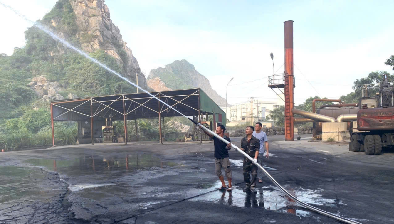 Hình ảnh cán bộ nhân viên GLOBE sử dụng vòi phun nước dập lửa tại buổi huấn luyện bồi dưỡng PCCC&CNCH định kỳ